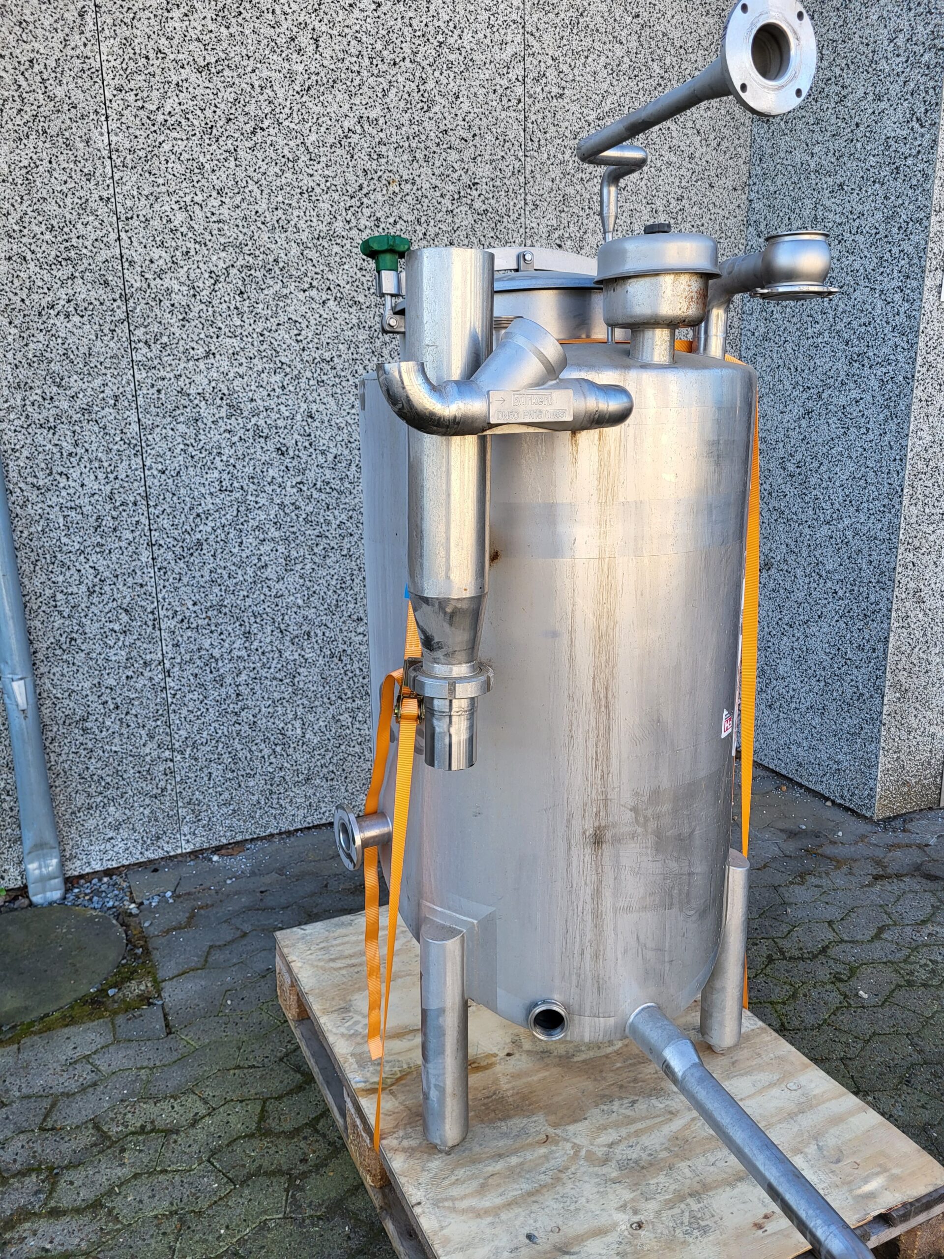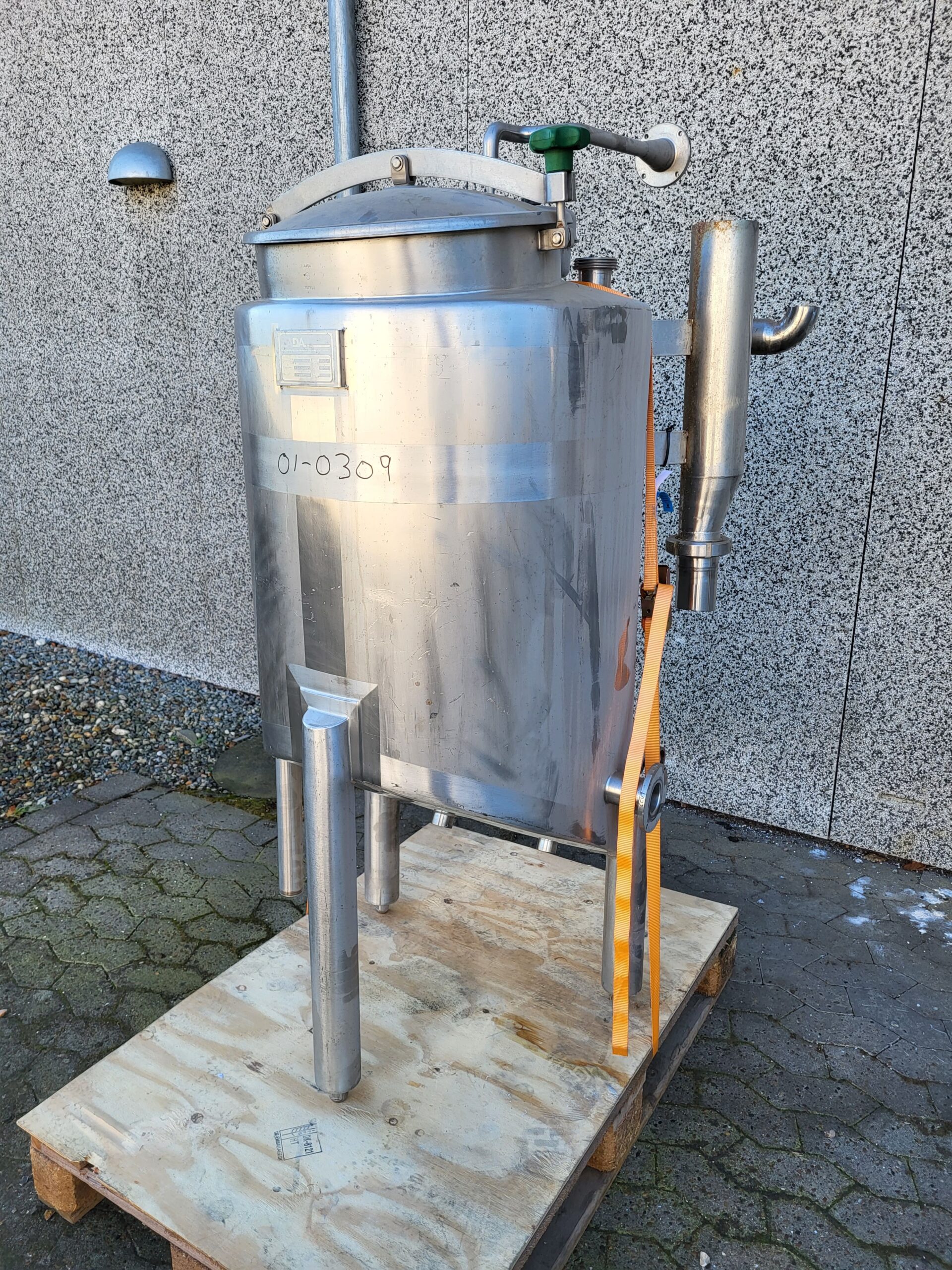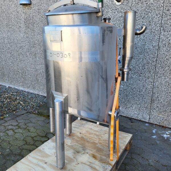 200 litre stainless steel tank 01-0309 Volume: 200 Stock: 1 Description Brand: ADA Year: 1997 Vertical stainless steel tank 3 legs Outlet: 2″ Manway Inclining bottom Adjustable feet Venting branch CIP cleaning Dimensions: 600mm – sh 700mm – th 1600mm Contact us Contact us Anders Lundum Sales Manager, second hand equipment +45 4093 3957 alu@fhscandinox.com