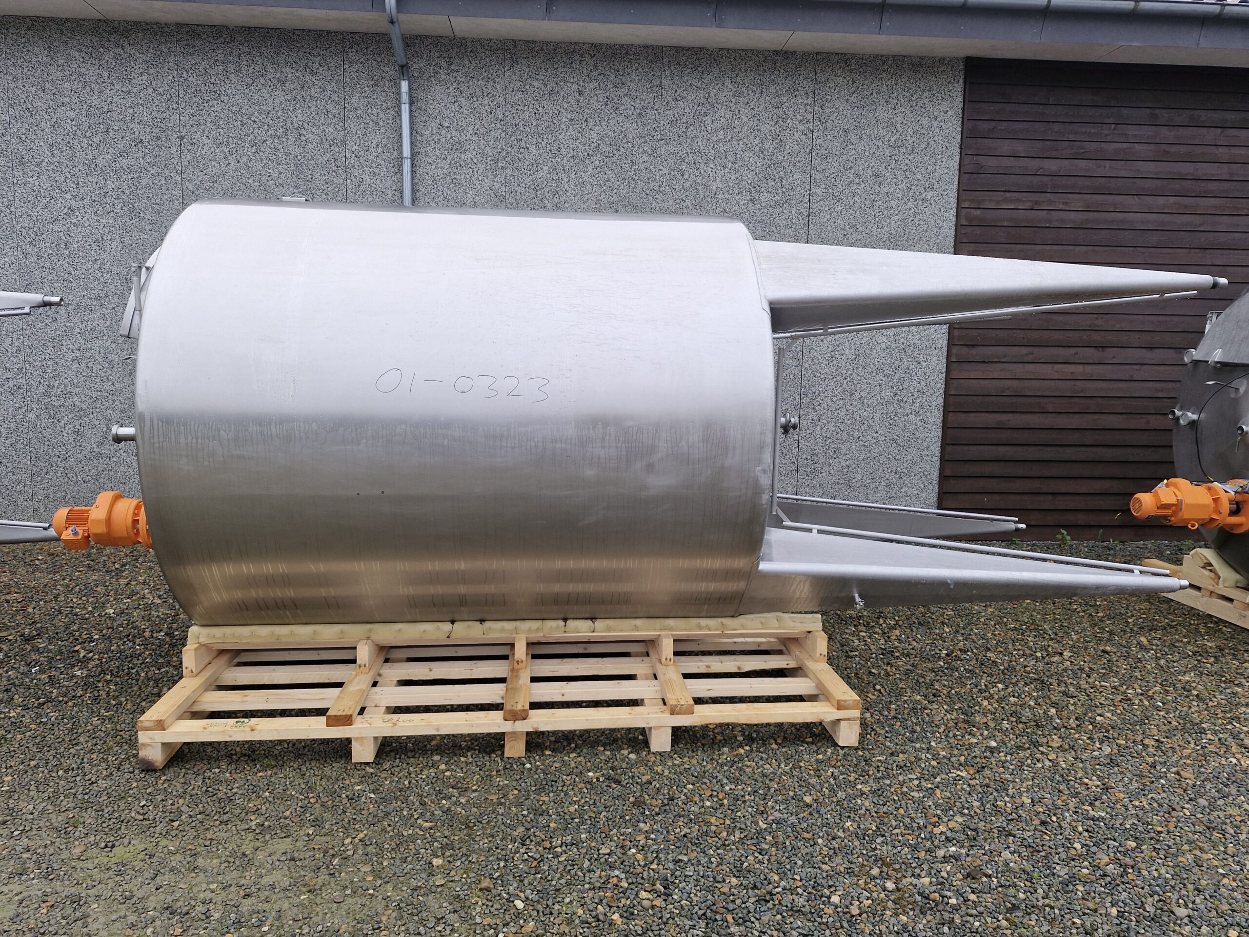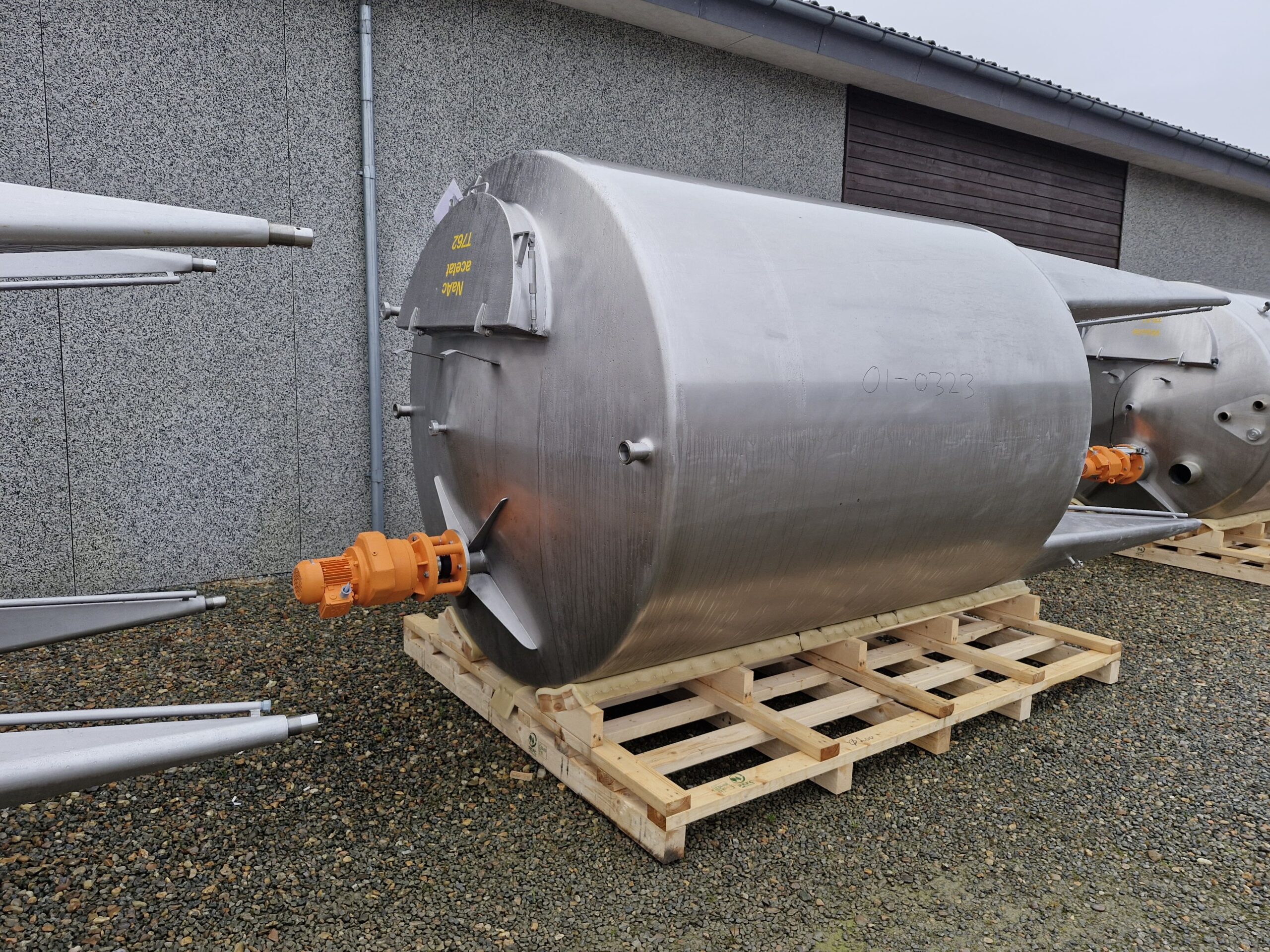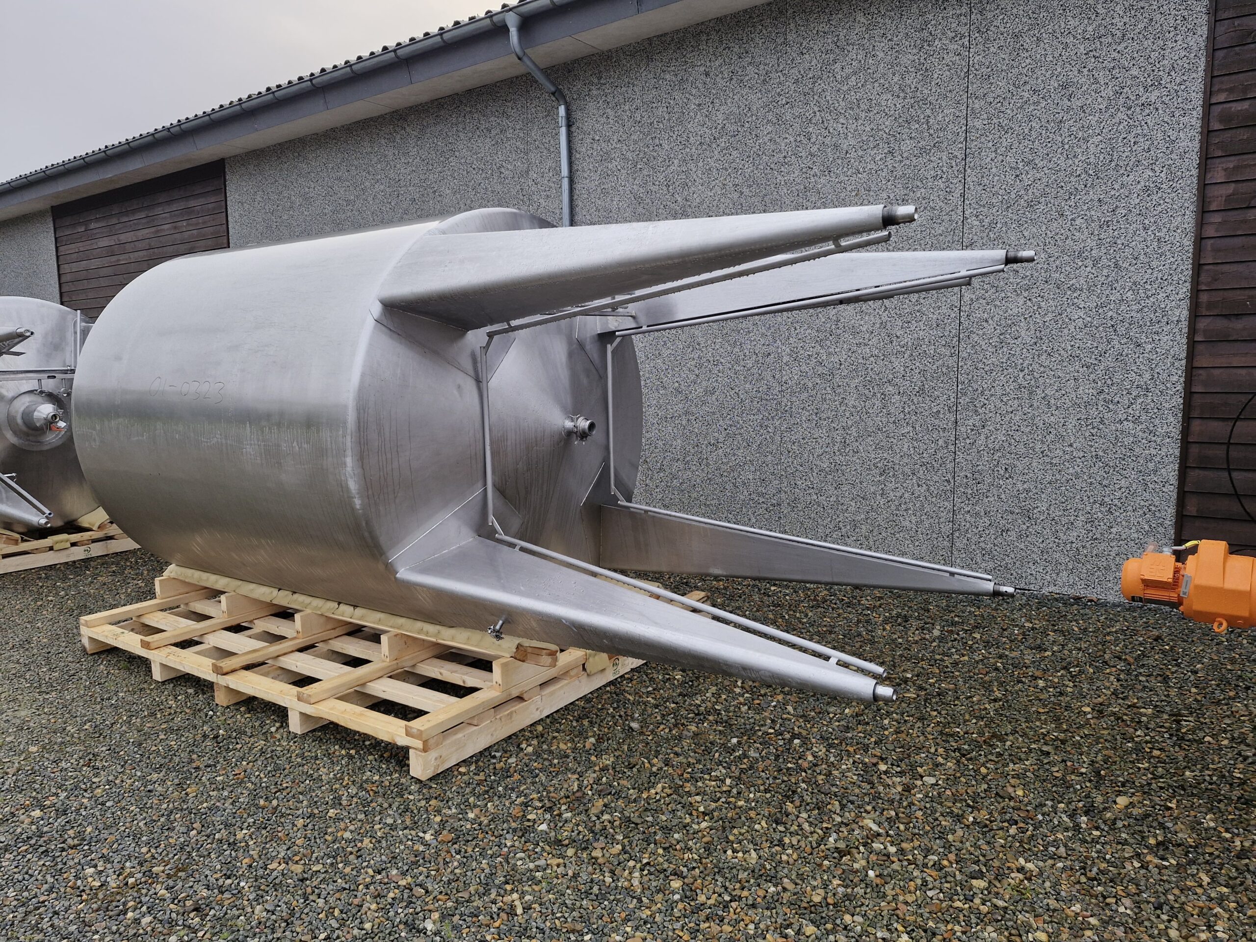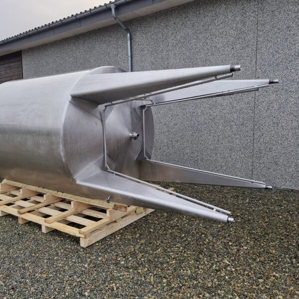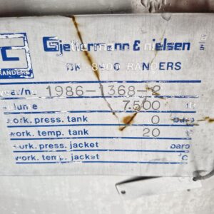 7.000 litre stainless steel tank 01-0323 Volume: 7000 Stock: 1 Description Vertical stainless steel tank Conical bottom and top 4 legs Outlet: 2″ Agitator Manway Adjustable feet CIP-cleaning ø 2000mm – sh 2350mm – th 5100mm Contact us Contact us Anders Lundum Sales Manager, second hand equipment +45 4093 3957 alu@fhscandinox.com